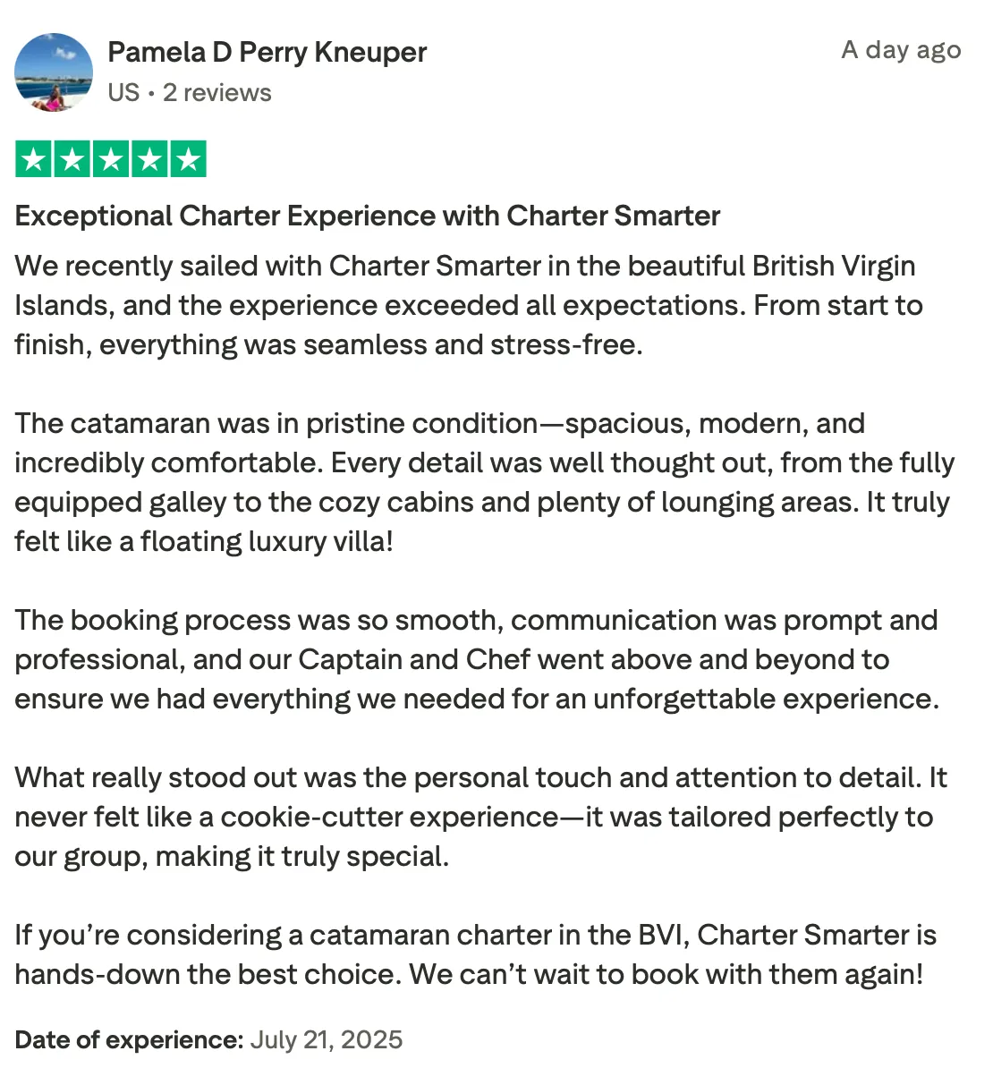 We recently shared a reel on our socials that gives you a close-up look at Iara, one of our most beautiful sailing catamarans available for charter in the Virgin Islands. She blends effortless comfort with thoughtful design, and offers the kind of all-inclusive experience that takes the stress out of vacation planning entirely.
