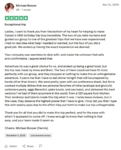 “Your chef outdid themselves. We took photos of every meal because we knew there was no way we could recreate this at home.”