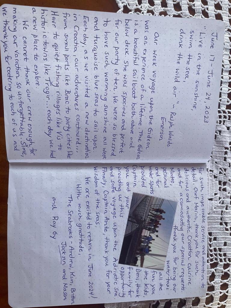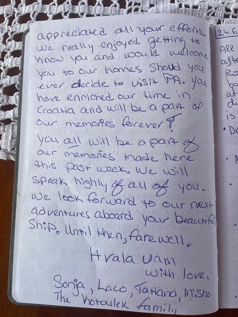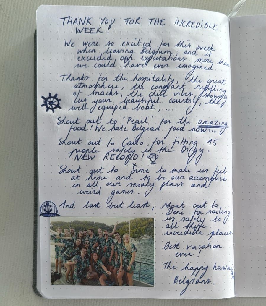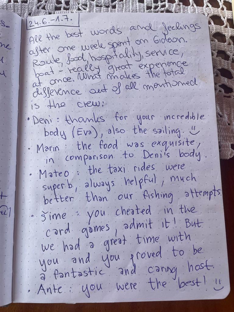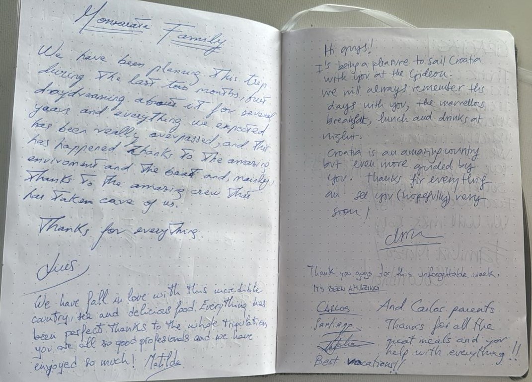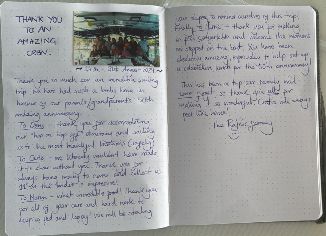 PRICE LIST 2026 SEASON A ____ 23.900 € ____ 04.07. - 22.08. SEASON B ____ 22.900 € ____ 13.06. - 04.07. and 22.08. - 05.09. SEASON C ____ 20.900 € ____ 23.05. - 13.06. and 05.09. - 19.09. SEASON D ____ 18.500 € ____ 11.04. - 23.05. and 19.09. - 17.10. INCLUDED IN PRICE: - fuel for main engines up to 25 hours cruising per week - 4 crew members, wages and food for the crew - motorboat 5.2 m with outboard engine 60 hp - welcome drink and welcome snack - accommodation on the yacht - all equipement on board - air condition - unlimited - service on board - linen and towels - yacht cleaning - insurance - permits - Wi-Fi - VAT Leisure equipment: kayak, SUP x 2, water ski, snorkeling equipment - free of charge FOOD OPTIONS: - half board: 500 € pax/week (breakfast + lunch/dinner)* - extra meal: 50 € pax/week per person - discount for children: 0-3 age free; 3-10 age 50% of the price * Breakfast includes tea / coffee, water and orange juice with meals * Lunch includes drinks (alcohol and non alcoholic) BEVERAGE OPTIONS: - beverages yacht bar only: by bar price list, in this option client are not allowed to bring their own beverages on board. - all inclusive domestic package: includes Croatian quality wines, beers, spirits, soft drinks, natural and mineral water, coffee, tea, juices: 250 € pax/week - all inclusive alcohol package: includes croatian quality wines, beers, spirits, soft drinks, natural and mineral water, coffee, tea, juices. Foreign spirits: whisky Red Label or Jameson, rum Bacardi or Captain Morgan, gin Bombay or Tanqueray, vodka Absolute or Smirnoff, tequila Sierra or similar: 360 € pax/week - all inclusive domestic non-alcoholic package: 140 € pax/week - al drinks equipped by guests: corkage fee 1.000 € per week * specially ordered wines, premium wines, champagne, foreign spirits and foreign drinks are at extra cost. EXTRA COSTS: - port fees/anchorages: are to be paid on spot in cash, according to actual costs in ports. The total cost per week depends on the selected itinerary. It is not obligatory for the yacht to be in the port each night, it can also be anchored, which lowers the mooring fees (Approximate cost is between 1.500 € – 2.000 €) - delivery fee for embarkation/disembarkation in any other port except base port, if “empty leg” caused – 1.000 €