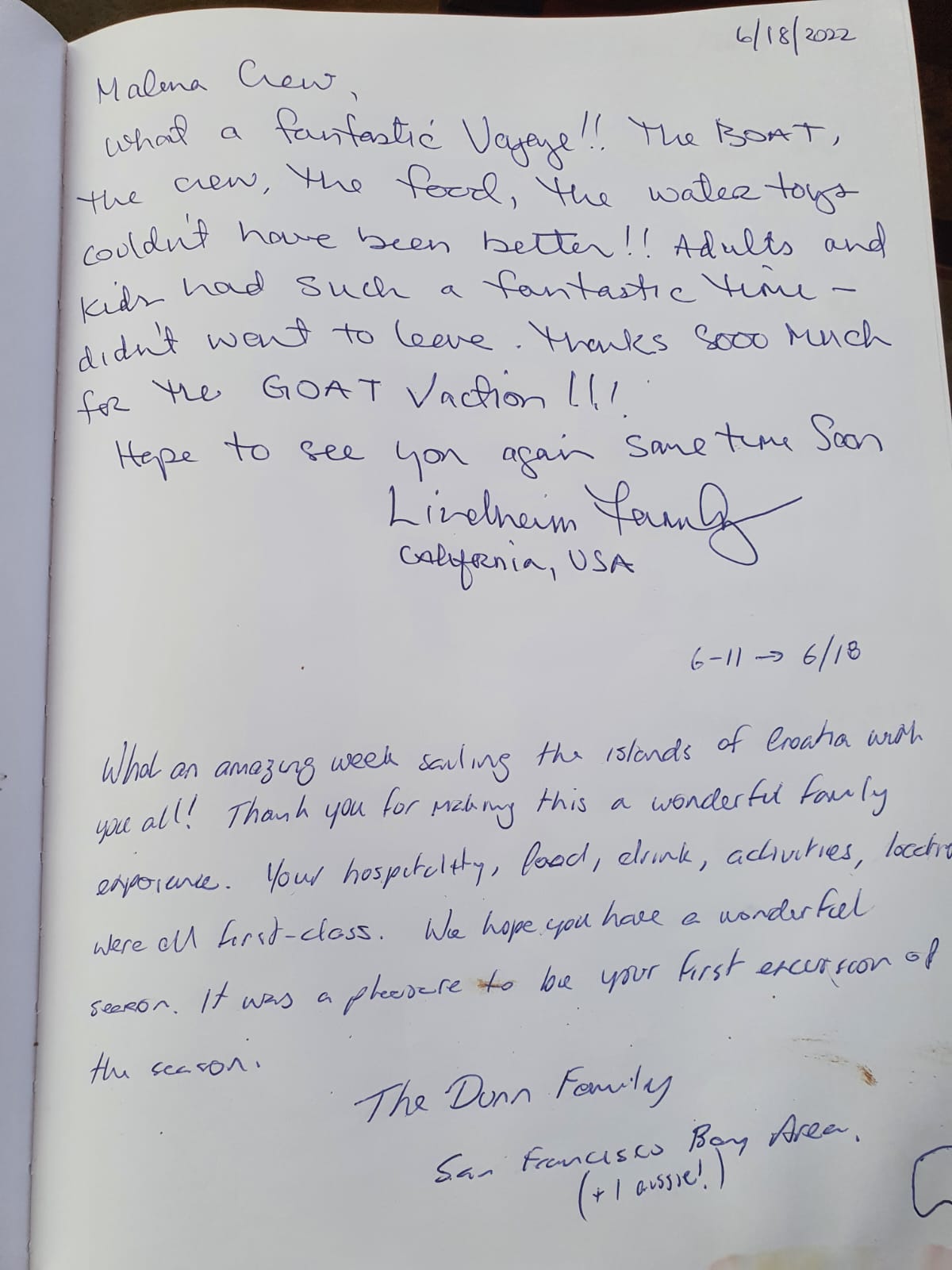 We loved every minute of it, and the crew of the Malena made it a very special vacation for us; one that we will be talking about for a long time!