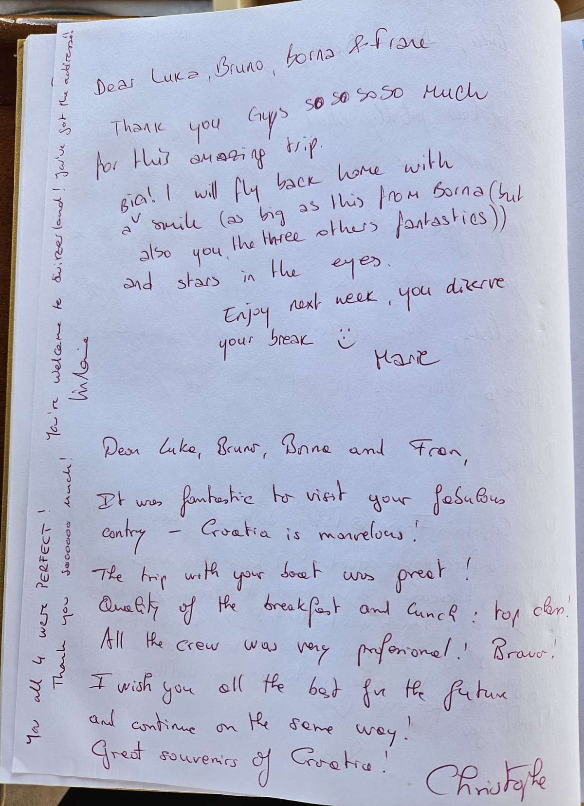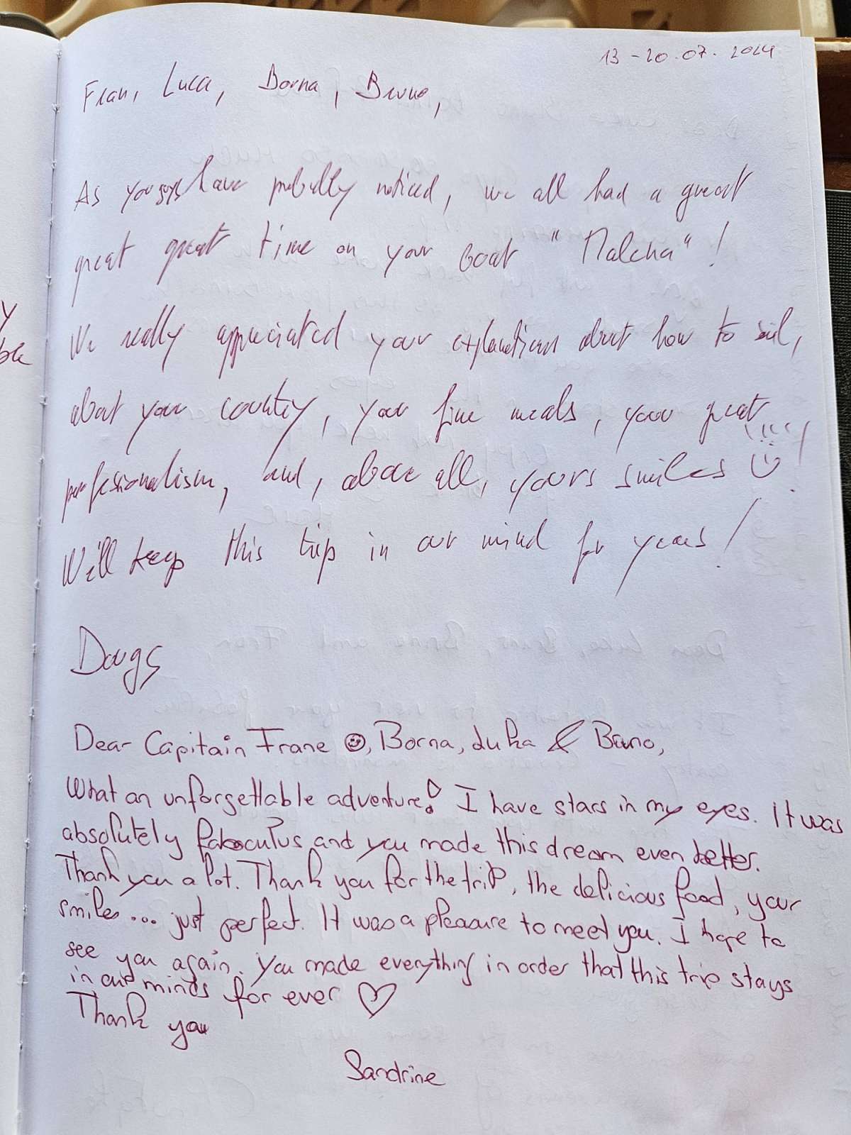 Gulet Malena is super good, the crew is excellent! Everyone excelled and the chef is highly recommended. The Croatian scenery was beautiful!! The route that we traveled very well planned and beautiful. The excellent crew, from the Captain, through the chef, and without leaving aside the other two members of the crew. The excellent service and flexibility of the crew to accommodate situations, weather, and our tastes and preferences was incredible. No detail was missed. Very happy!! Many thanks for everything!!