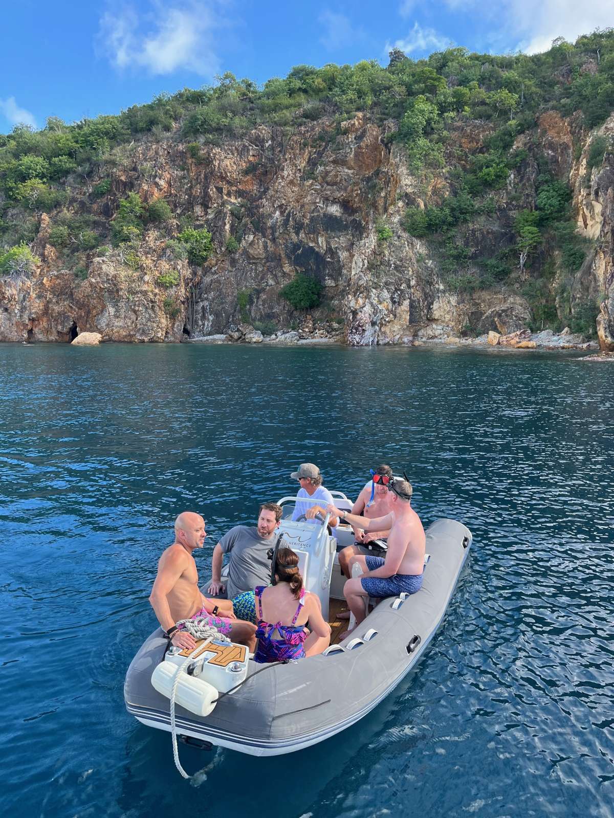 Eric was a great captain. He is one of those rare people who has the gift of making things appear effortless when he is undoubtedly putting in a lot of effort behind the scenes. He made the effort to really understand what we wanted out of this vacation. No doubt lots of folks love to go bar to bar (and who doesn’t like a good Caribbean bar?), but that’s not what we wanted to do on this trip. We were with the 9 people we wanted to be with, and Eric managed to take us to uncrowded spots (even during Christmas in July) where the snorkeling, hiking, and water were all fantastic. And, even the day when we did hit the Soggy Dollar, he made sure we got there early, had our pains killed, and were on our way before it got crowded. We were traveling with 4 teens, and he took the time to get to know each of them whether it was keeping Emily from getting seasick, letting Michael help him man the controls, or having Will fish and wakeboard. He seemingly knew all of their names (and all the adults’ names) immediately. Obviously, he’s taking us to places he’s been to and seen many times before, but he made it seem like he was enjoying our discoveries just as we were enjoying them.