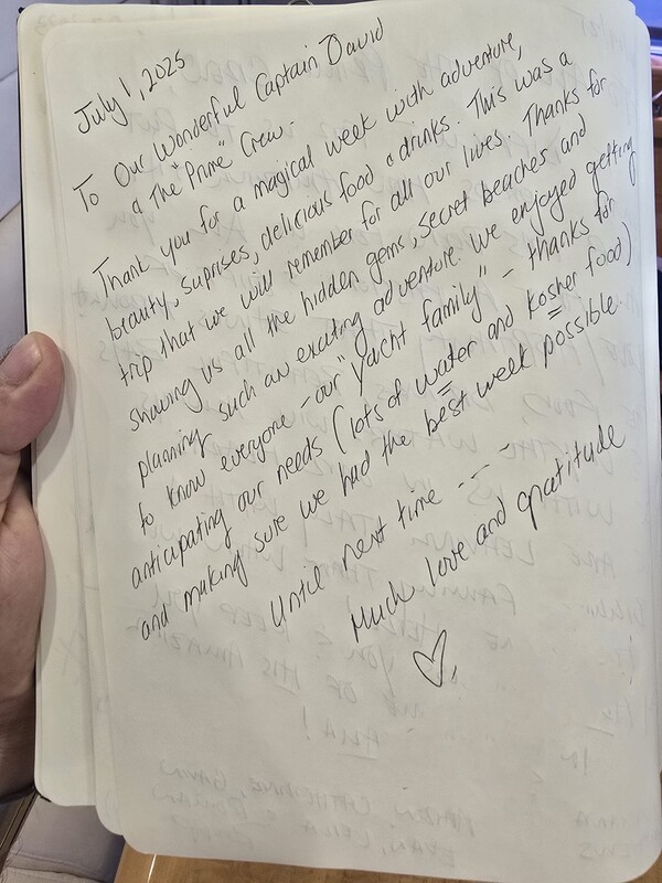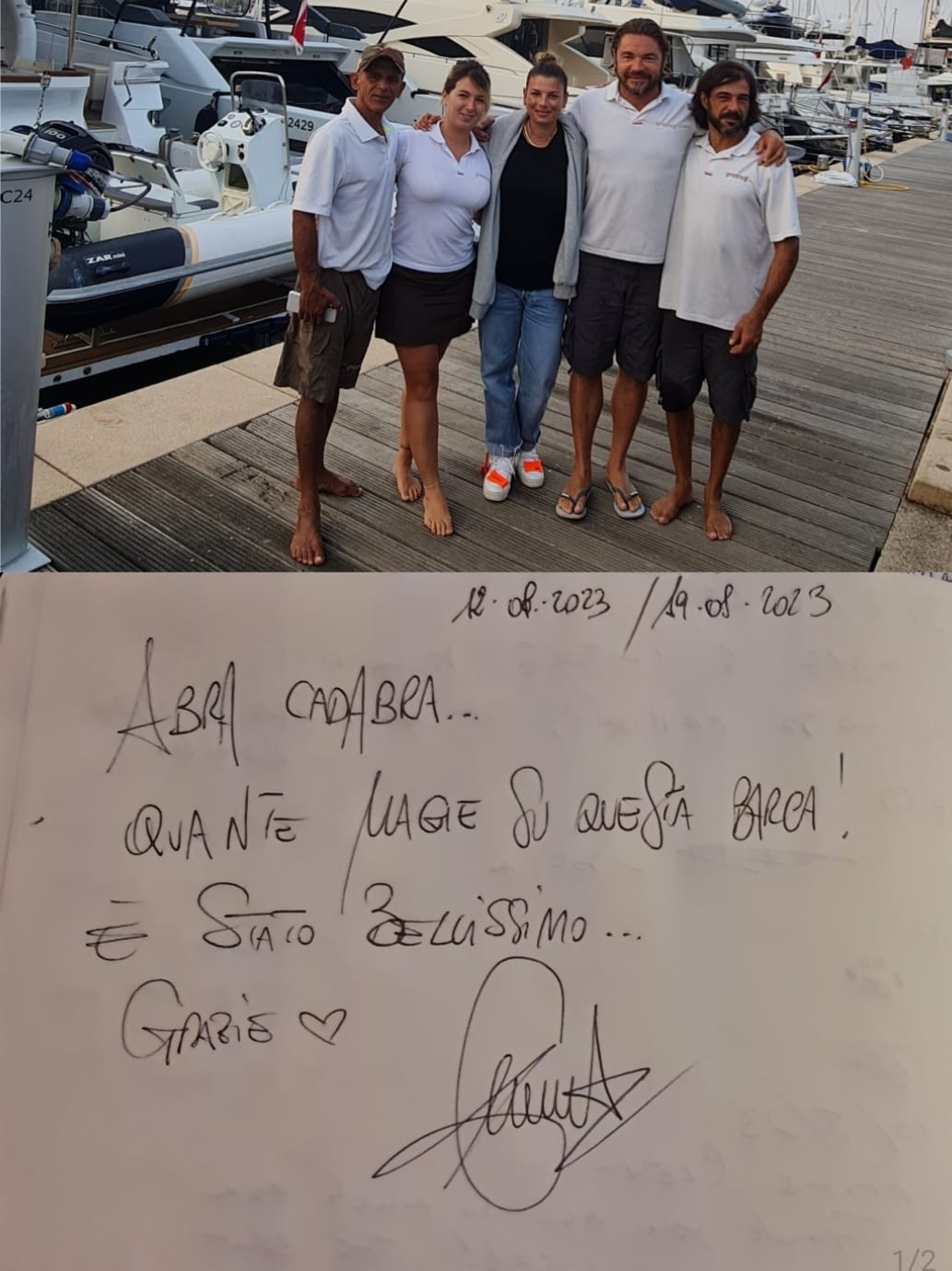 Thank you for making our family vacation a special and memorable occasion. Captain Davide and crew are not only capable but also warm and friendly: you all made us feel at home, meaning we felt as if we were among old friends and we were grateful to leave with new friends. Thank you also for the recommandations and using your connections to get us into exclusive places!