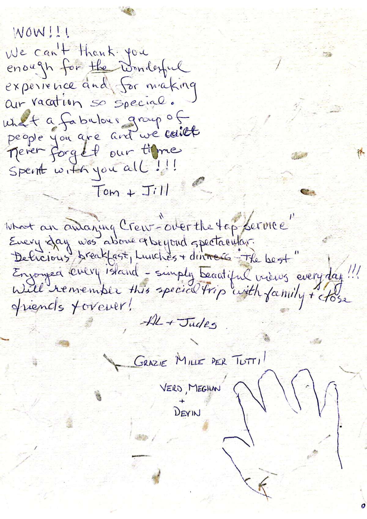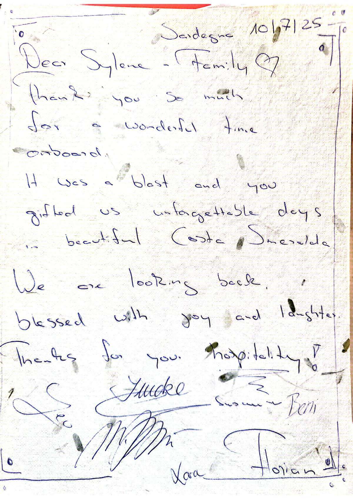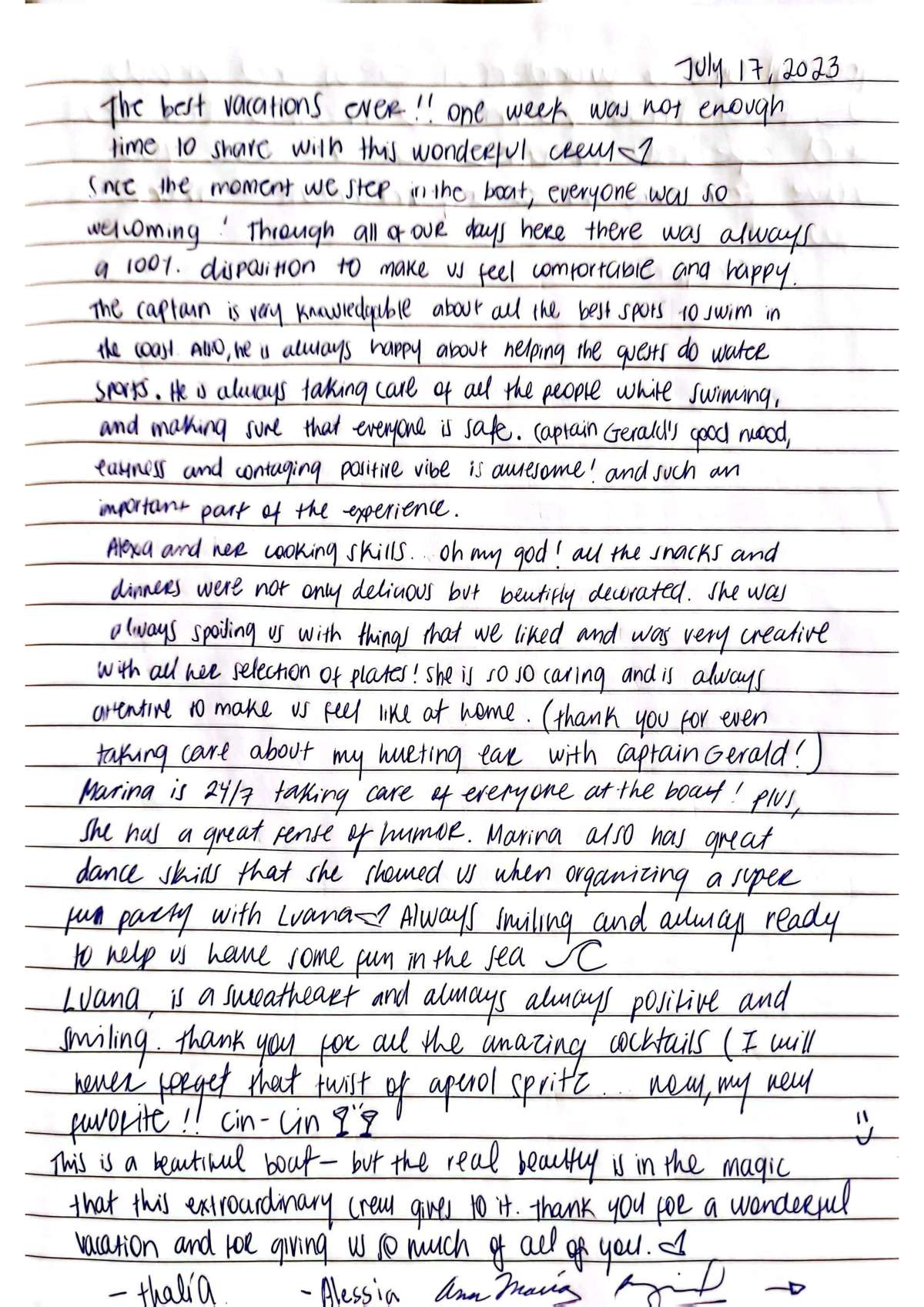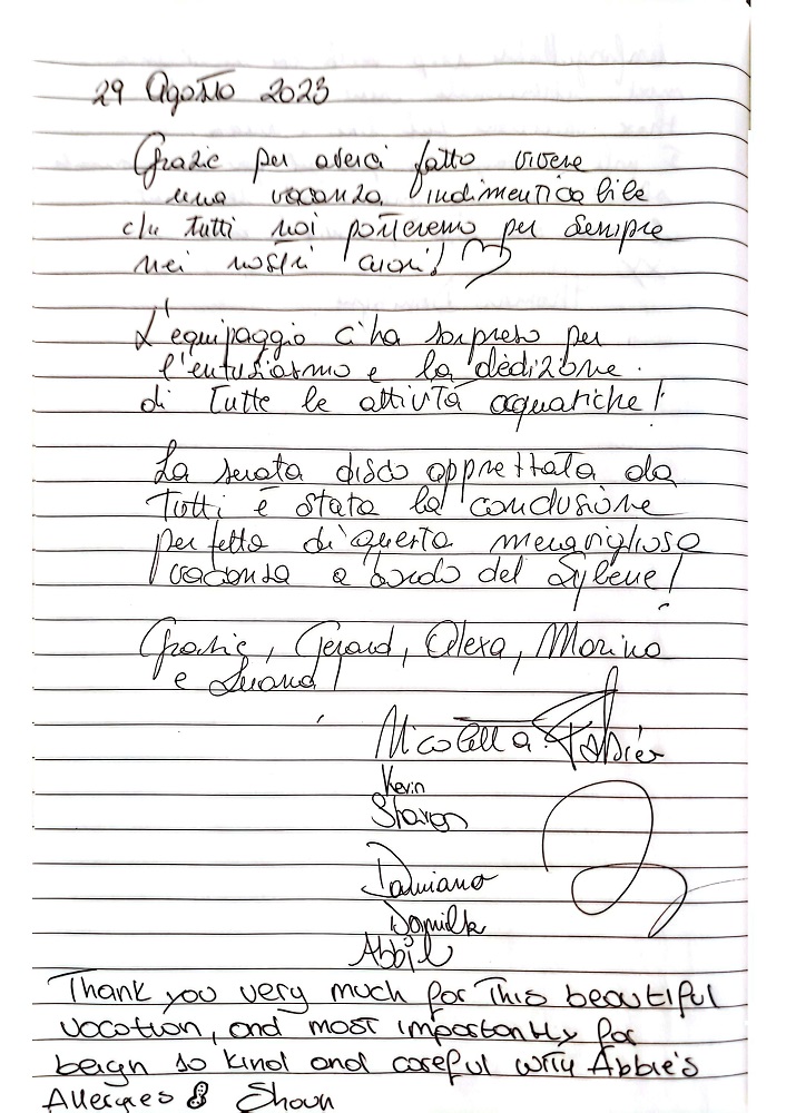 This is a beautiful yacht but real beauty is in the magic that this extraordinary crew gives to it. Thank you for a wonderful vacation and for ginign us so much of all of you.
