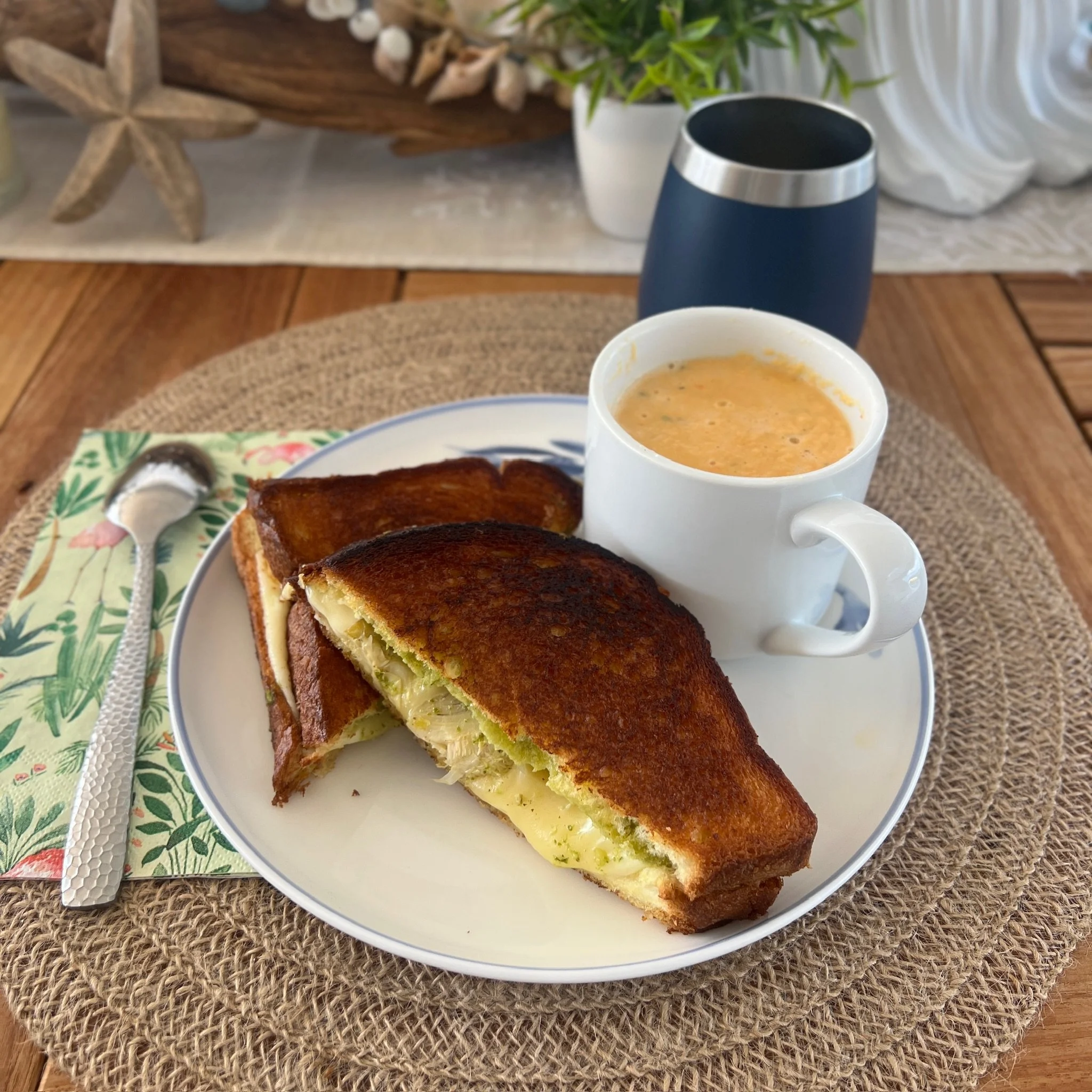 Grilled Creamy Havarti, Pesto and Artichoke Sandwiches and Homemade Soup