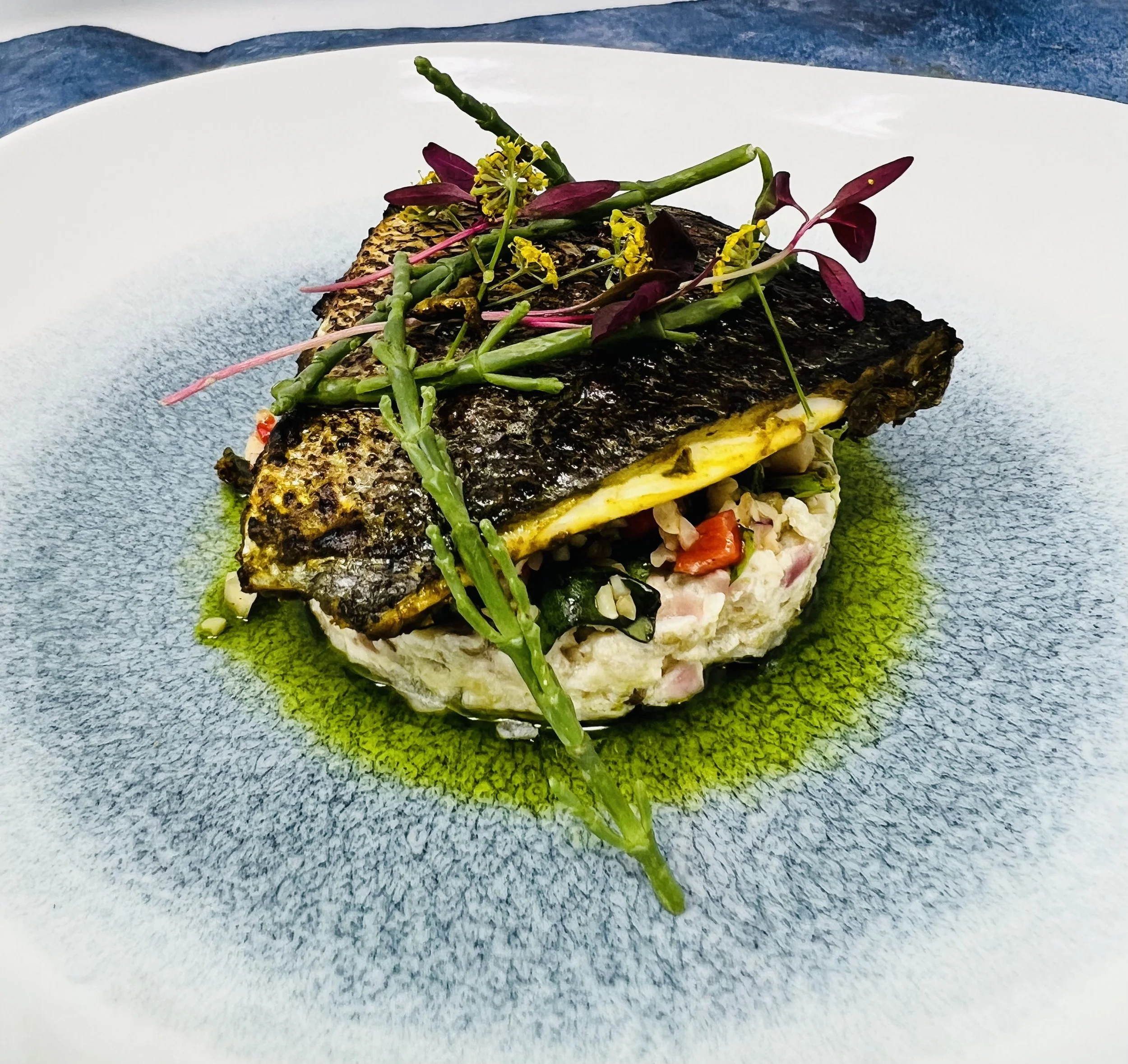 Served with prosciutto-wrapped asparagus.Chermoula Snapper