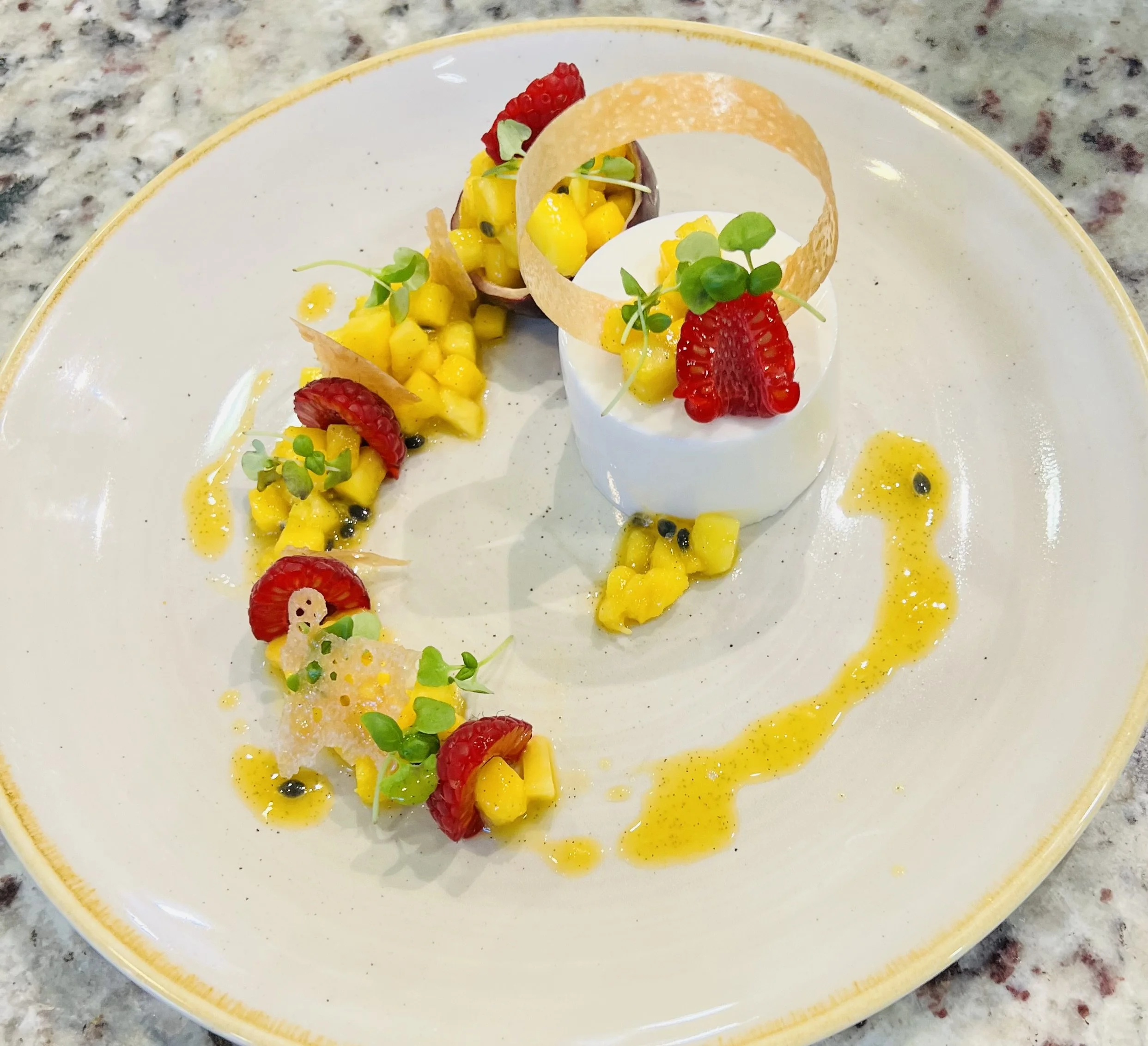 Rich, creamy cheesecake topped with seasonal fruit.Panna Cotta
