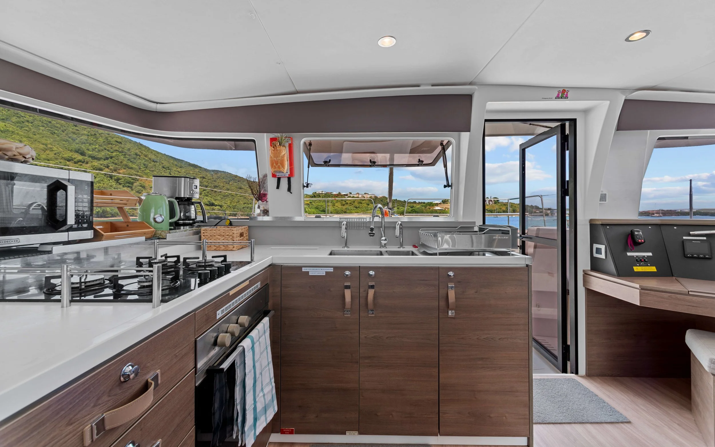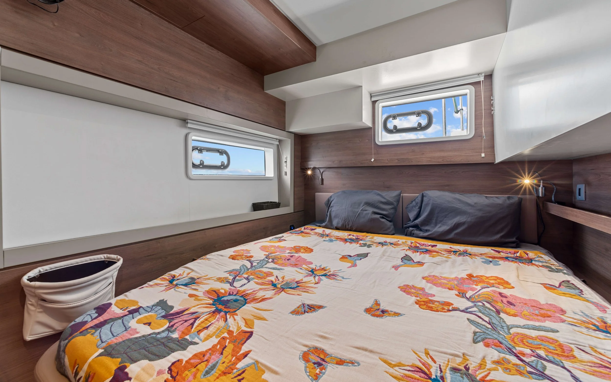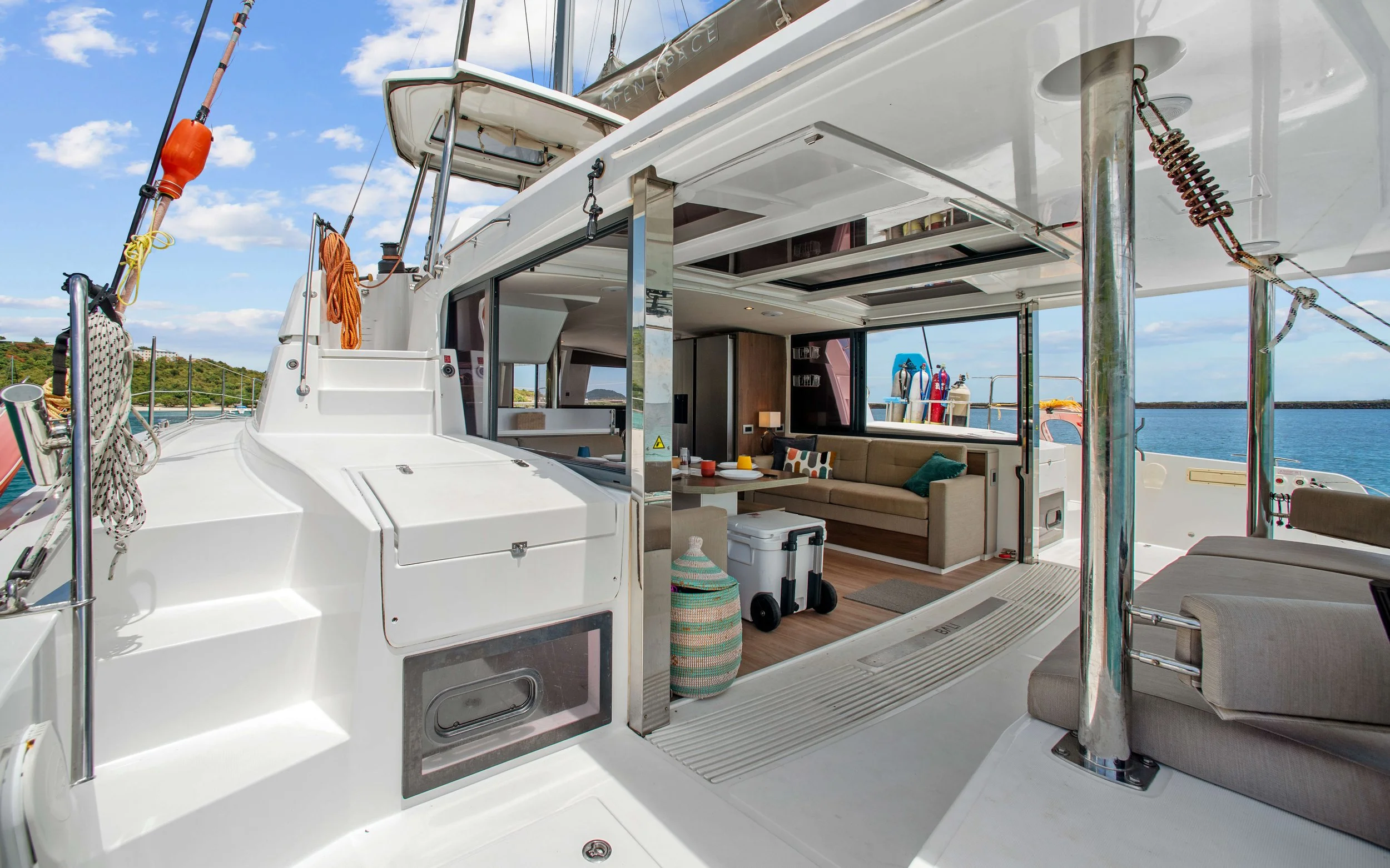 Step aboard and experience Bali’s signature innovation: a completely open concept from bow to stern. Thanks to a unique, full-width saloon-cockpit layout with panoramic windows, Mah Na Mah Na seamlessly transitions from sailing mode to lounge mode. Indoors flows effortlessly into the outdoors, creating a light-filled oasis perfect for relaxing, dining, and entertaining.