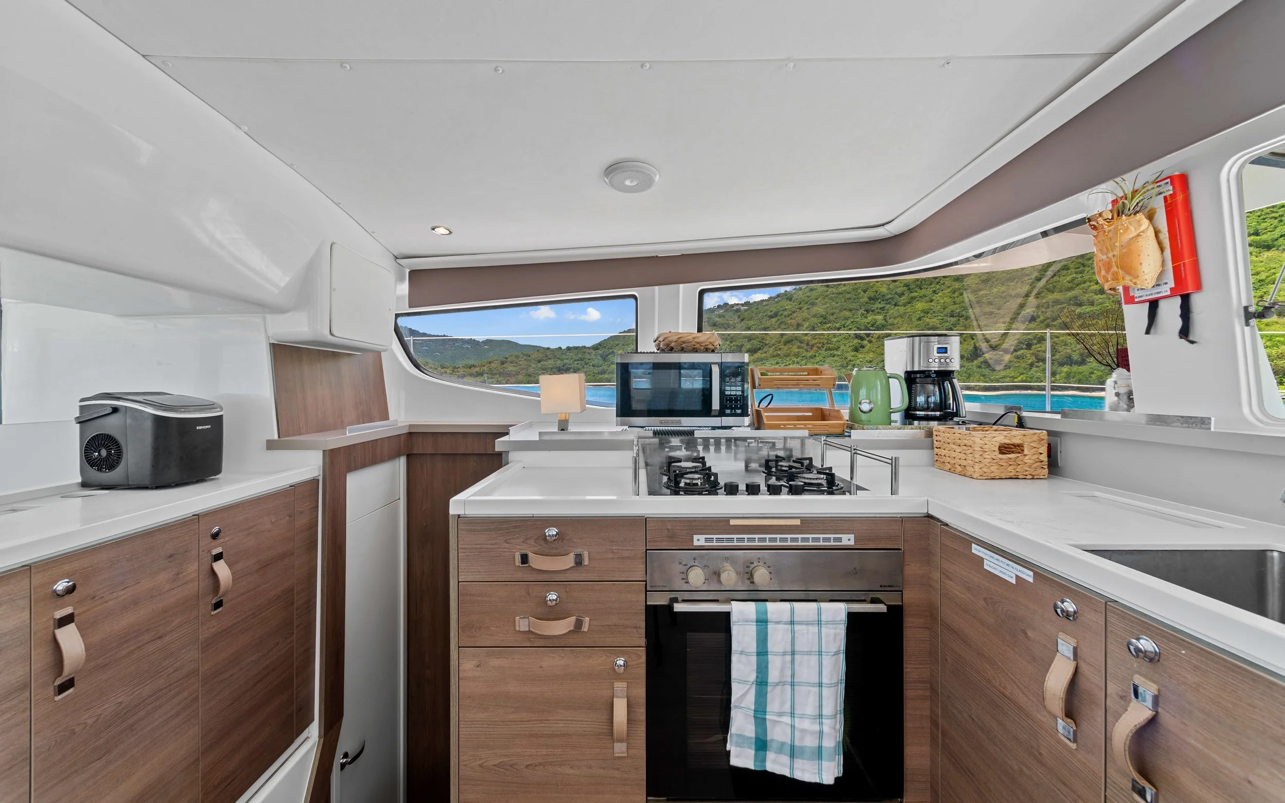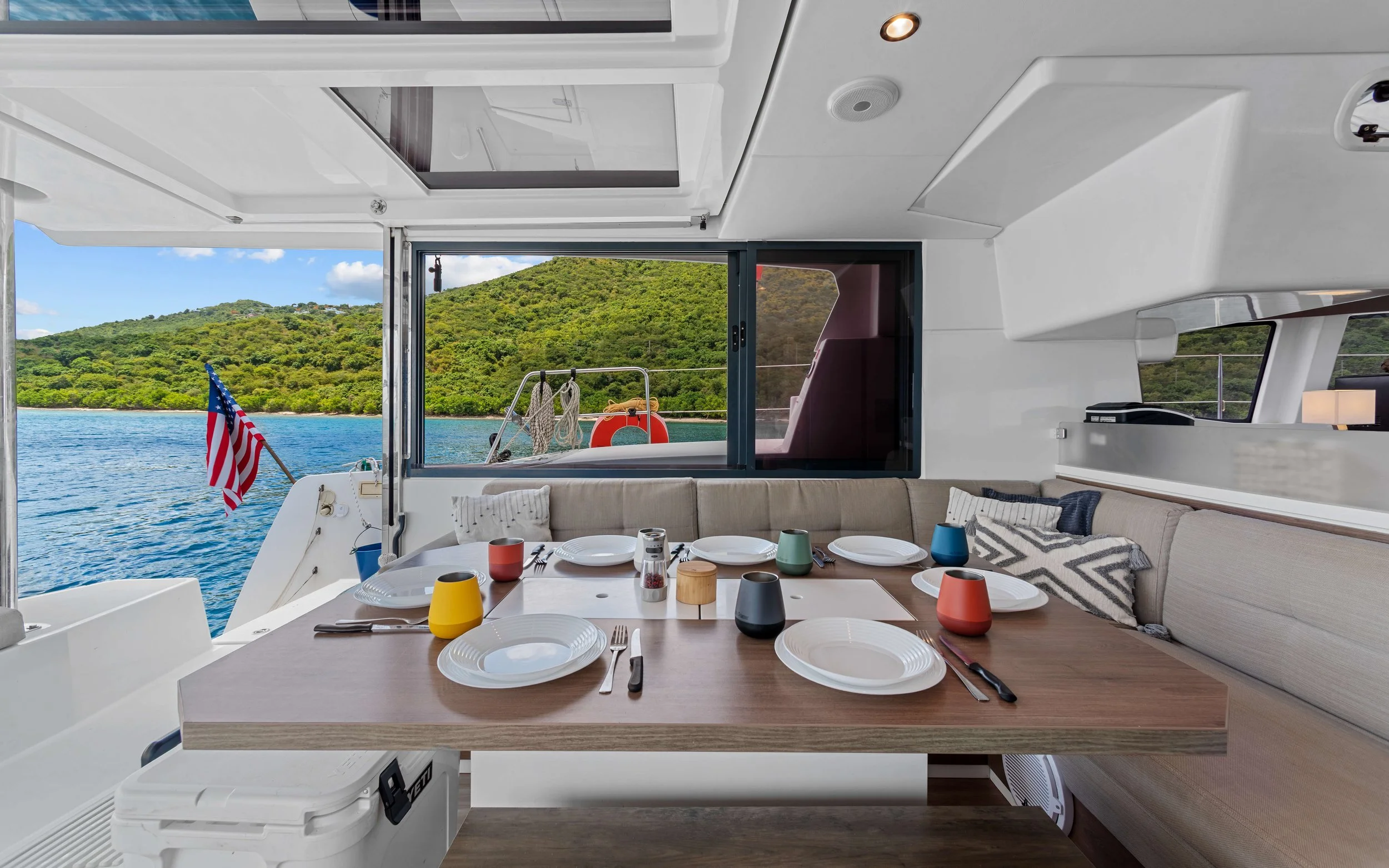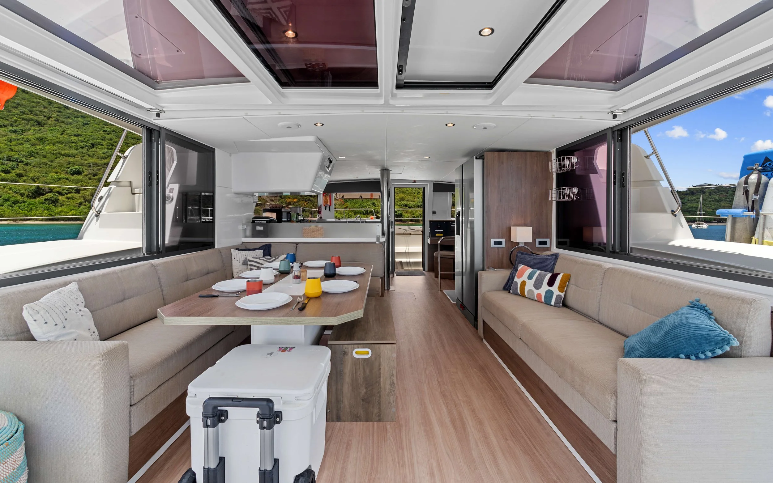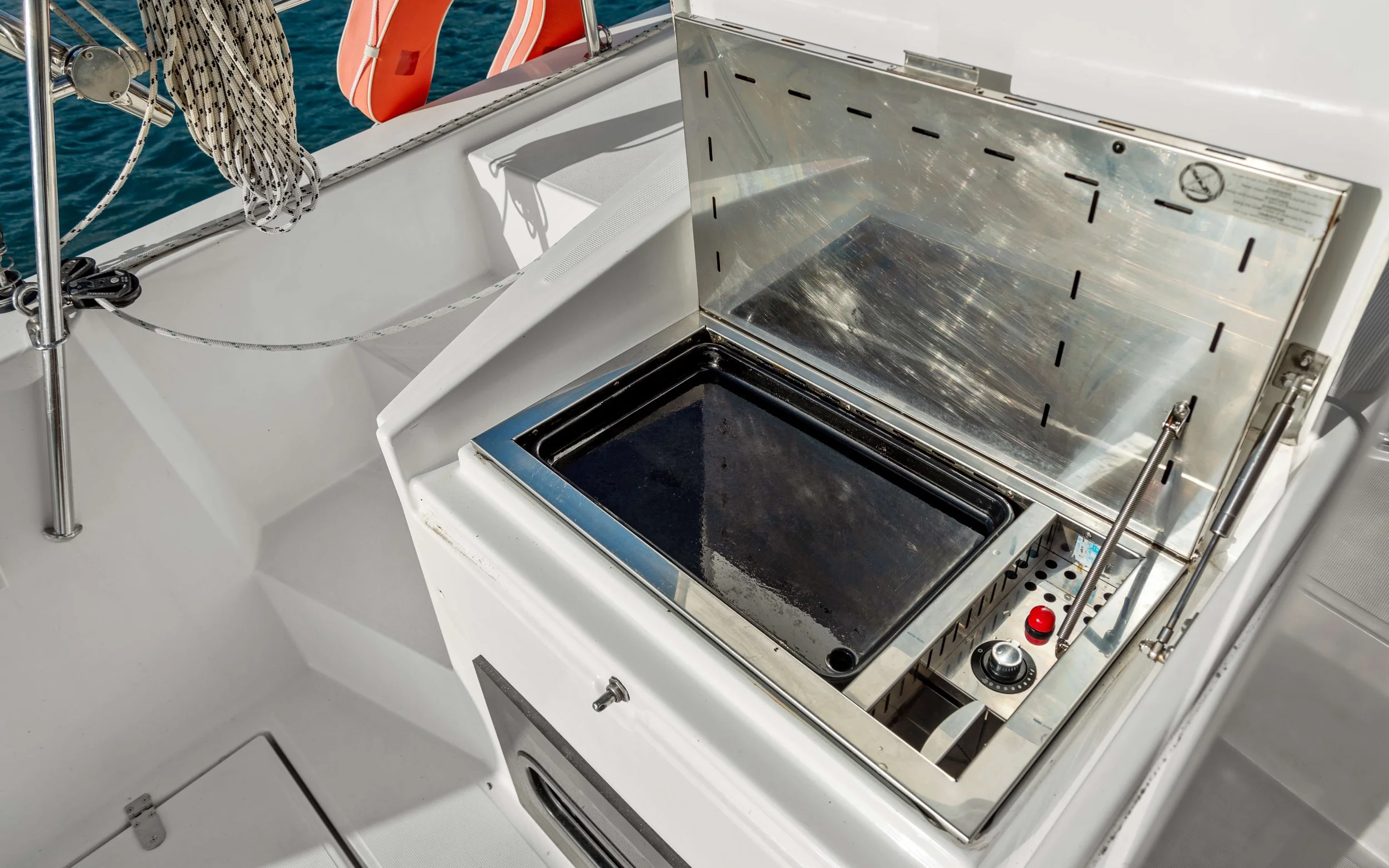 Step aboard and experience Bali’s signature innovation: a completely open concept from bow to stern. Thanks to a unique, full-width saloon-cockpit layout with panoramic windows, Mah Na Mah Na seamlessly transitions from sailing mode to lounge mode. Indoors flows effortlessly into the outdoors, creating a light-filled oasis perfect for relaxing, dining, and entertaining.