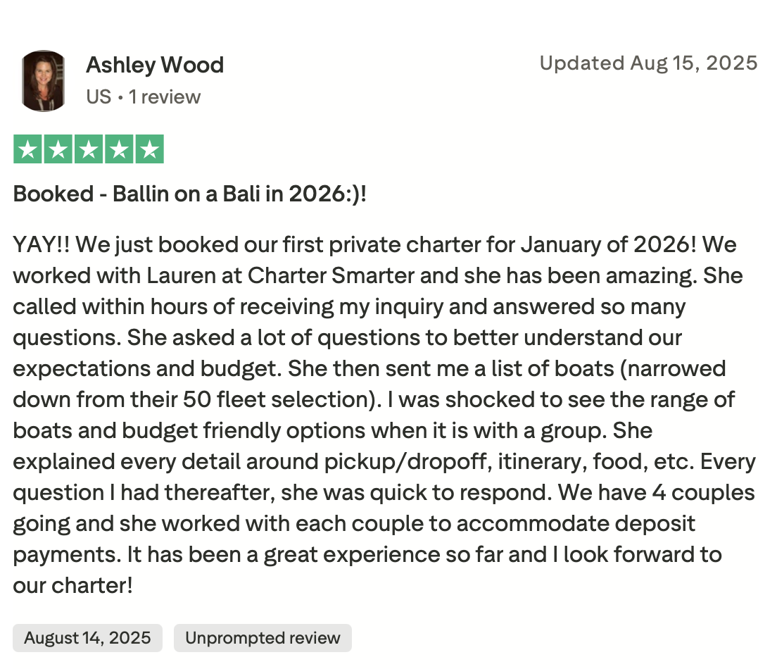 If you’re enjoying this newsletter, follow us on Instagram at @charter.smarter to keep the escape going and stay up to date on yacht highlights, beautiful scenery, guest experiences, planning tips and offers as they’re released.